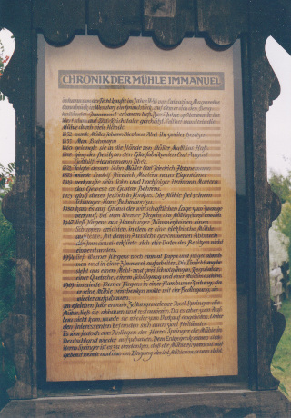 Johann von der Fecht kaufte im Jahre 1848 von Chatharina Magarete Osnabrück in Westdorf ein Grundstück, auf dem er sich den Bergholländer "Immanuel" bauen lies. Zwei Jahre später wurde dessen Wert schon auf 2.720 Reichstaler geschätzt. Seither wandert die Mühle durch viele Hände. Anno 1969 inserierte der letzte Müller, Werner Jürgens, in einer Hamburger Tageszeitung, dass er seine Mühle verschenken wolle, mit der Bedingung, sie wieder aufzubauen. Im gleichen Jahr erwarb Axel Springer (u.a. BILD-Zeitung) die Mühle, ließ sie abbauen und restaurieren. Es war das Anliegen des Herrn Springer, die Mühle in Deutschland wieder aufzubauen und seinem Entgegenkommen ist es zu verdanken, dass die Mühle 1979 wieder aufgebaut wurde. Sie steht heute am Eingang des Mühlenmuseums Gifhorn.