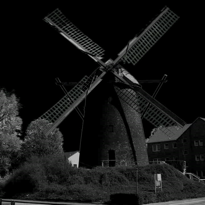 Weil die Resonanz auf das Bild der Hiesfelder Windmühle in der letzten Woche sehr groß war, gibt es hier ein weiteres. Für alle, die hier zum ersten Mal die geschwungenen Flügel sehen: Die Flügel (oder auch Ruten) sind aerodynamisch, wie bei Flugzeugen oder Formel-1-Boliden.