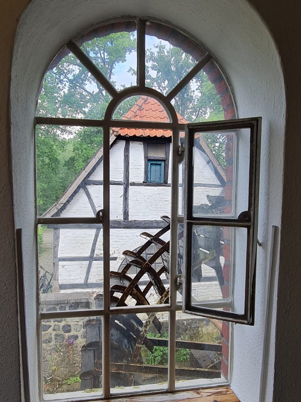Wie gut, dass diese "Kleine" noch zu groß ist, um sie ins Handgepäck zu stecken. Damit gibt es auch keinen Stress beim Zoll. Doch es gäbe noch Platz auf dem Mühlengelände in Hiesfeld um diese minimalistische Form einer Mühle vorzustellen. Diese kleinen Mühlen arbeiten oft als Pumpen und haben keine Mühl- (Mahl-)steine. |