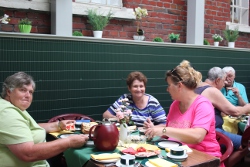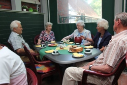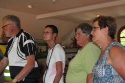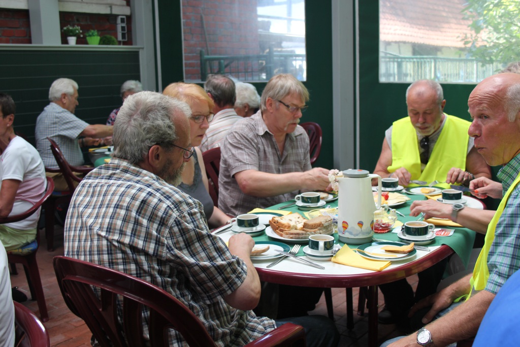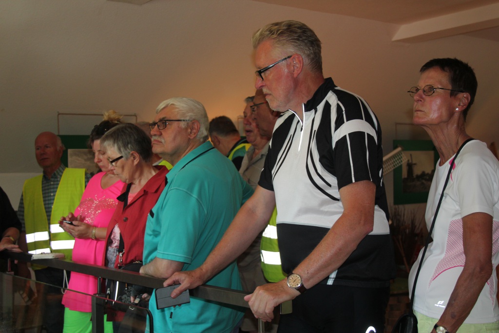 Manfred Goeke, der stellvertretende Vorsitzende Ortsverband Voerde-Friedrichsfeld, leitete die Radtour mit 34 Teilnehmern, die ab 14 Uhr am Samstag, 12. Juli 2015 und gleichzeitig warmen Sommertag nicht nur Rast an der Hiesfelder Wassermühle einlegte, sondern auch einen geführten Rundgang mit Kurt Altena und Heinz Siemenowski vom Mühlenverein durch das Mühlenmuseum machten.