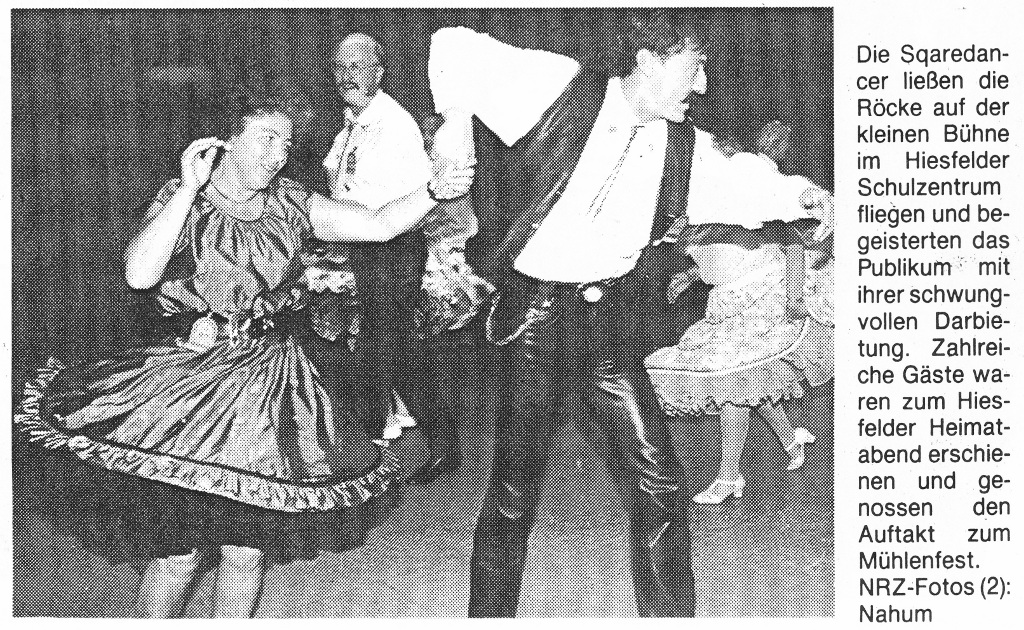 Square Dance Club Dinslaken die Röcke schwingen, sie begeisterten die Zuschauer mit mitreißender Musik und lustigen Tanzeinlagen. Nach dem Auftritt des Quartett-Vereins begann schließlich der „Klönabend". Allzuspät gingen die Besucher des Heimatabend aber auch nicht ins Bett, wartete doch am nächsten Tag schon das große Mühlenfest auf sie.