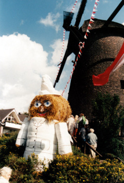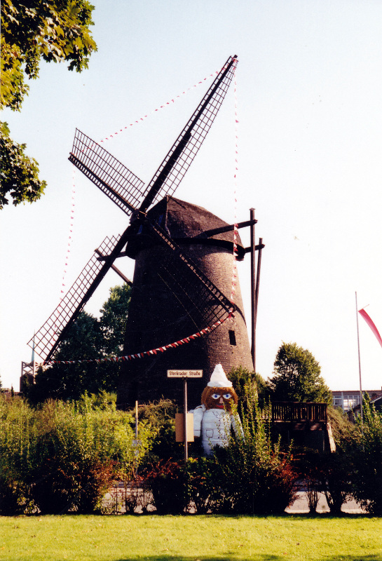 I-Tüpfelchen ist sicherlich die Fertigstellung des restaurierten Mahlwerks pünktlich zum Geburtstag. Viele Hiesfelder sahen zum erstenmal, daß sich die Flügel drehten. Und im Inneren konnten sich die Besucher ein Bild davon machen, wie eine alte Mühle funktionierte: Bis unters Dach, wo die schweren Holz-Zahnräder das Mahlwerk antrieben, konnte man klettern. Zwei Etagen tiefer drehte sich einer der drei großen Steine.