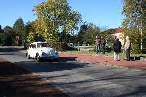 Mitglieder des Vorstandes des Mühlenvereins warten auf die Ankunft des ersten Oldtimers. Start der Rallye ist in Voerde auf der Rahmstraße. |